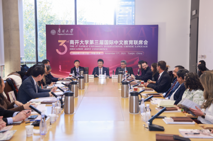 以世界中文大会召开为契机,11月17日下午,南开大学举办第三届国际中文教育联席会。陈军、巴西塞阿拉联邦大学副校长José de Paula Barros Neto以及来自9个国家的南开海外共建孔子学院和中文教学机构的中外方院长代表出席会议。