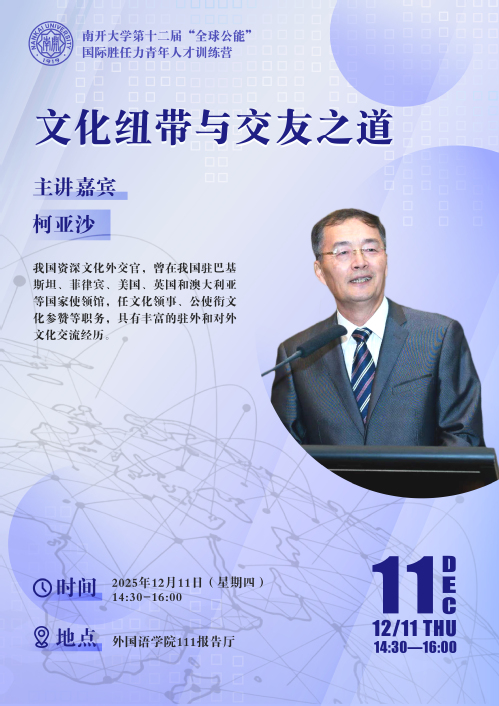 活动通知丨南开大学第十二届“全球公能”国际胜任力青年人才训练营第九次活动开始报名