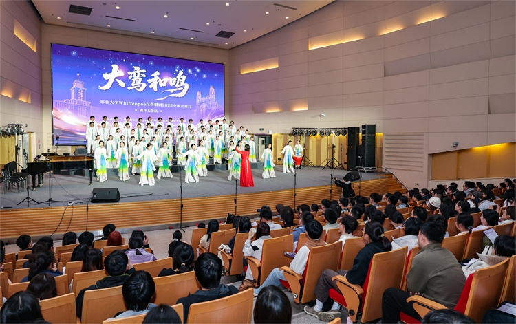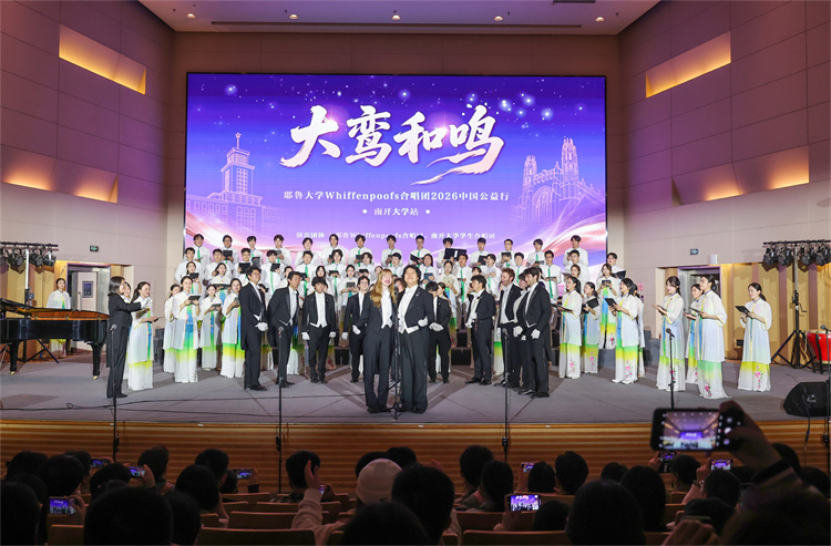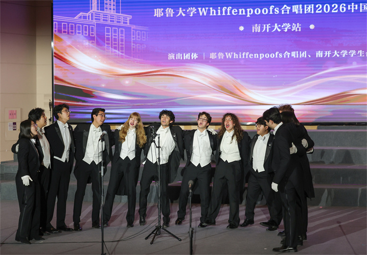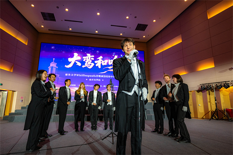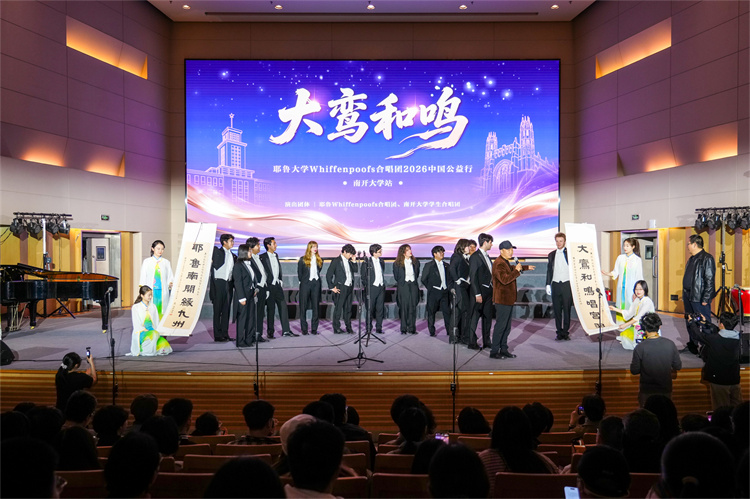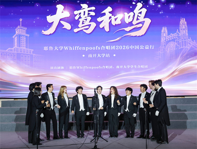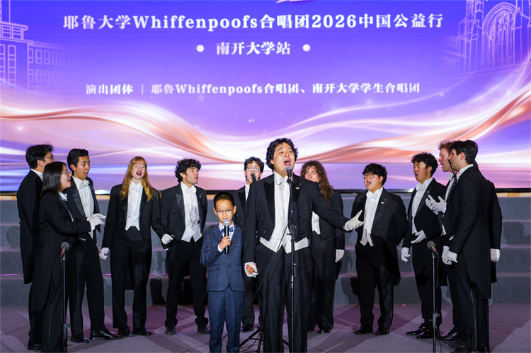 据了解,为积极响应落实“5年邀请5万名美国青少年来华交流学习”的倡议,北京大鸾翔宇慈善基金会特别设立“大鸾和鸣——中外青少年文化艺术交流项目”。为期15天的“大鸾和鸣——耶鲁大学Whiffenpoofs合唱团2026中国公益行”为该项目首发活动。本次南开大学之行是他们在天津唯一的公开交流演出,得到中国友好和平发展基金会、南开大学天津校友会、允公致远(天津)新能源科技有限公司的大力支持。
