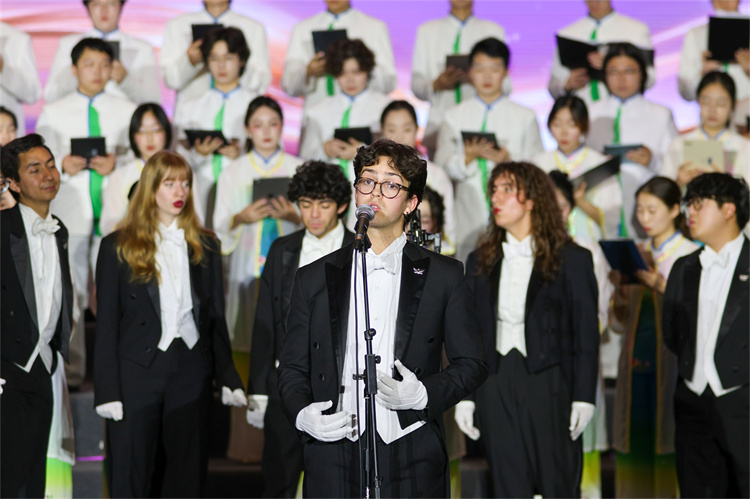 在最后的返场环节,两支高水平合唱团并肩而立,中美青年共同唱响《让世界充满爱》。跨越山海的音符在此刻汇成最和谐的旋律,触动着每一位观众的心弦。