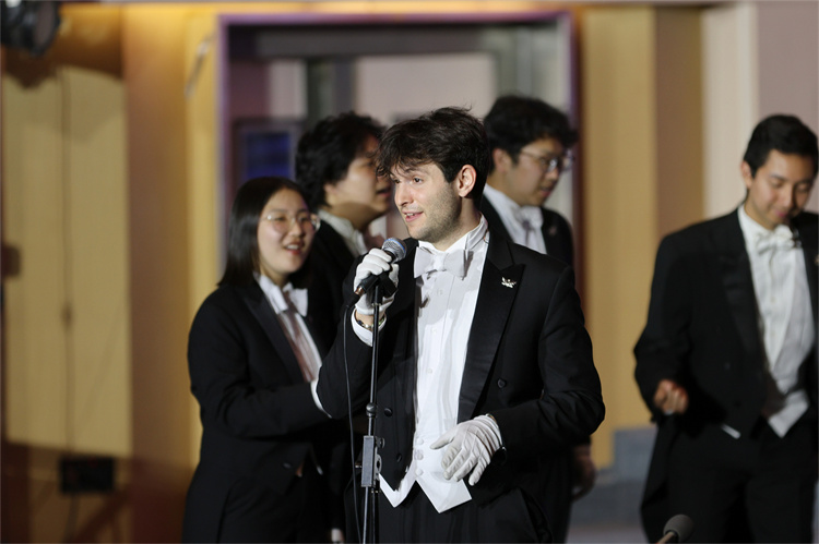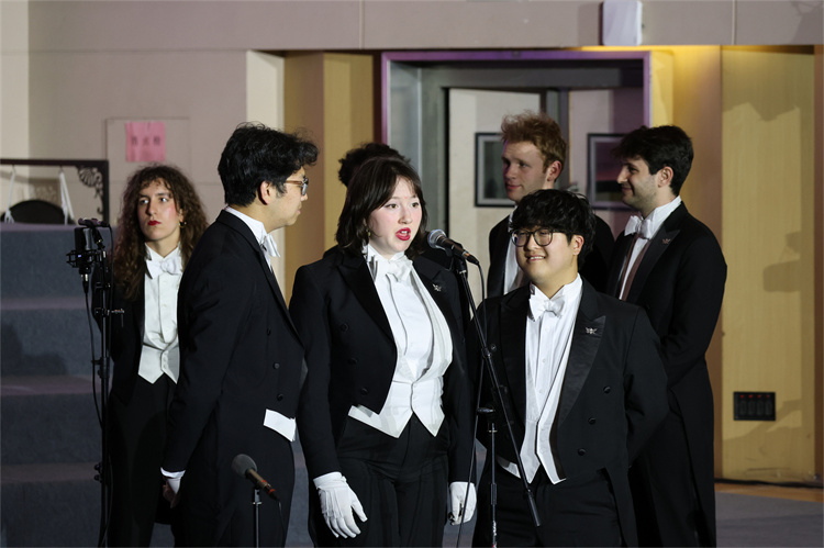 歌声不停,情谊无垠。南开大学学生合唱团再度登台。从《北极光》的壮阔神秘到《意大利沙拉》的诙谐幽默,从《沂蒙山歌》的婉转流畅到《谷雨梯田》的生机勃勃,清澈动人的歌声跨越中西文化,彰显出这支多次获得世界级合唱比赛金奖的“冠军合唱团”扎实的合唱功底。